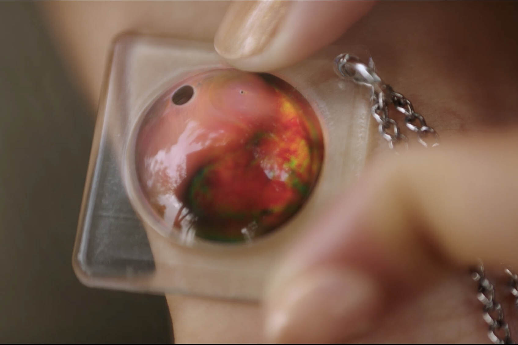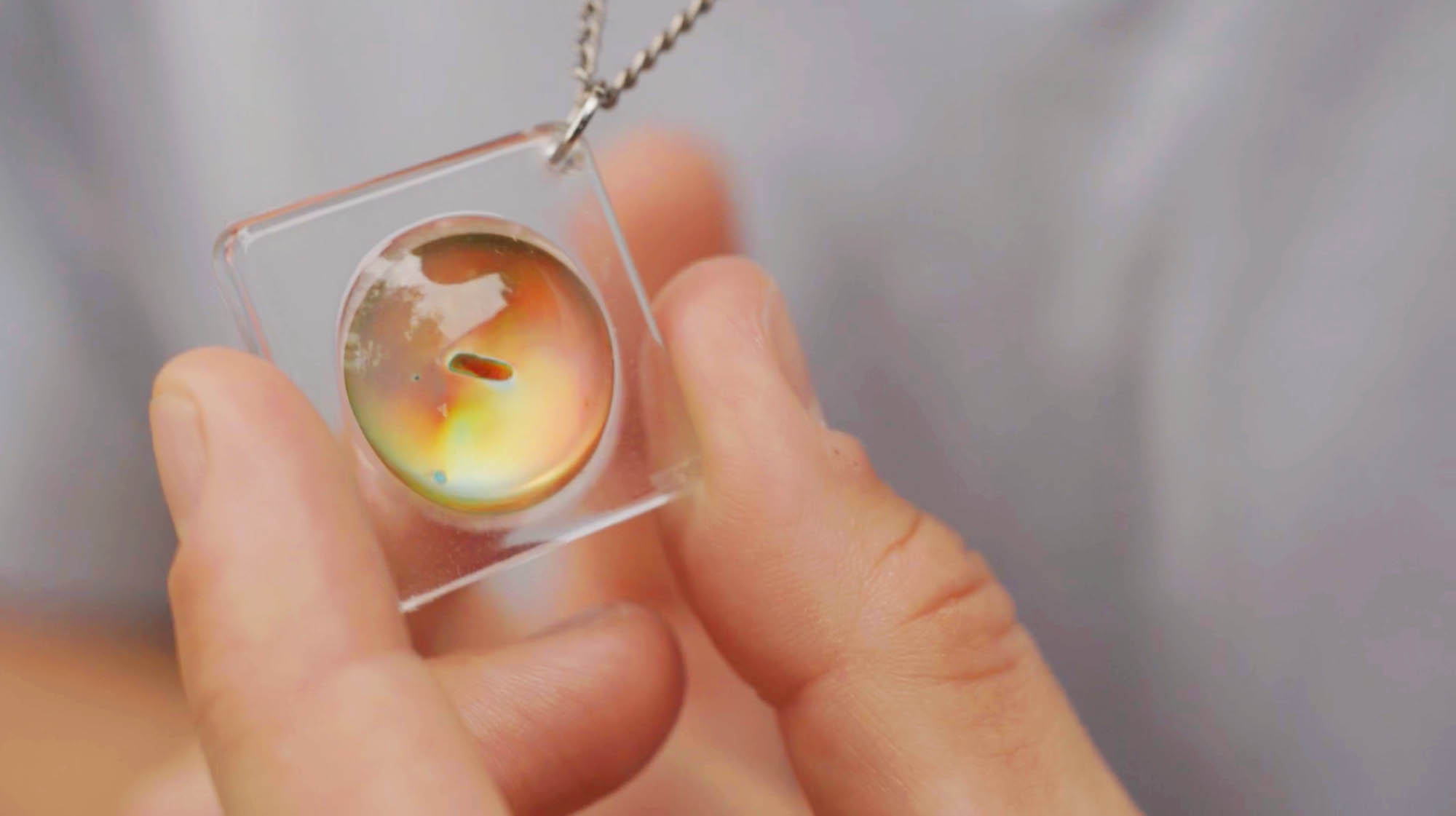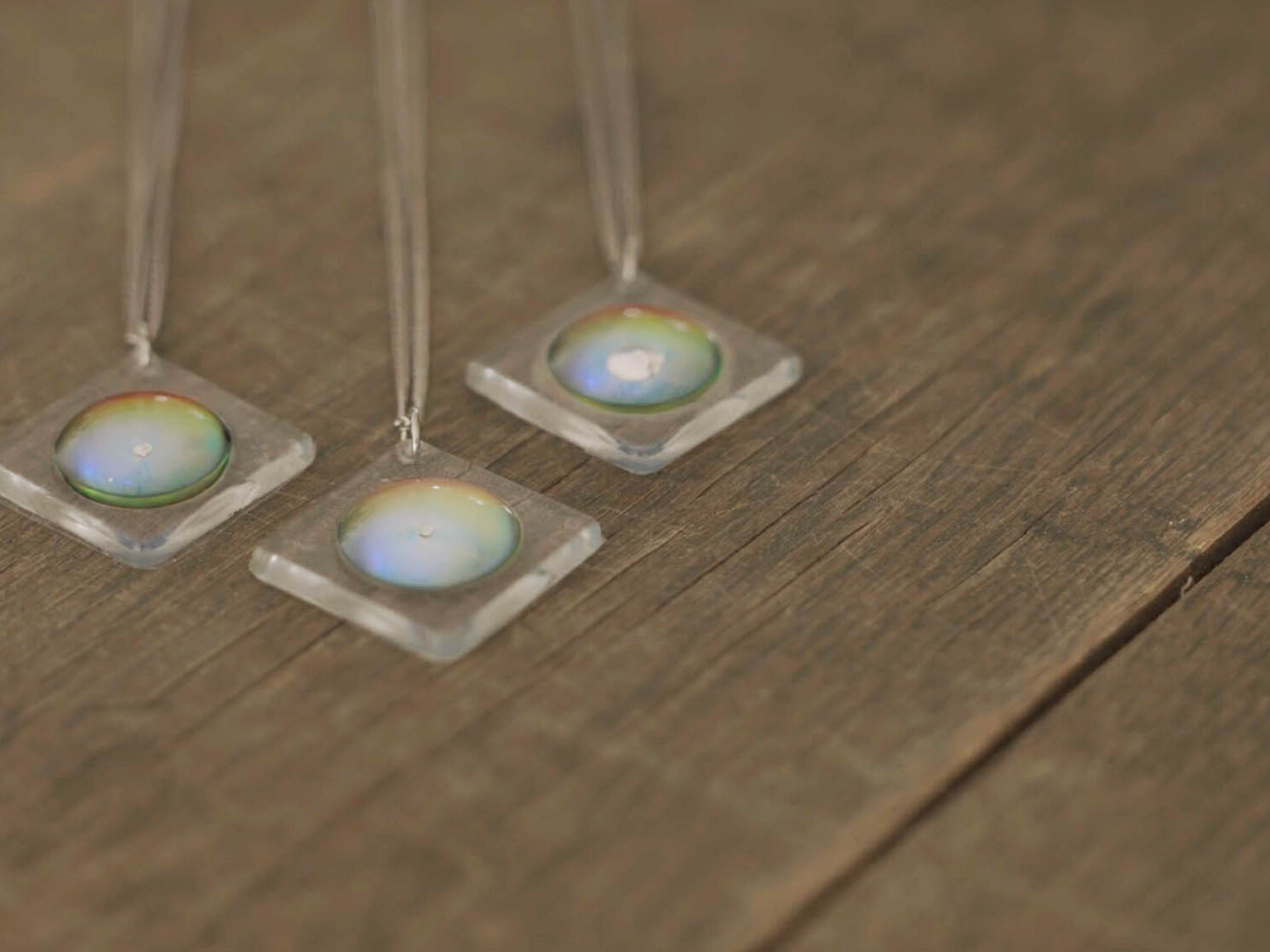 At once a scientific demonstration, a decorative item, and a sensory experience, The Liquid Crystal Necklace fascinates everyone who encounters it.